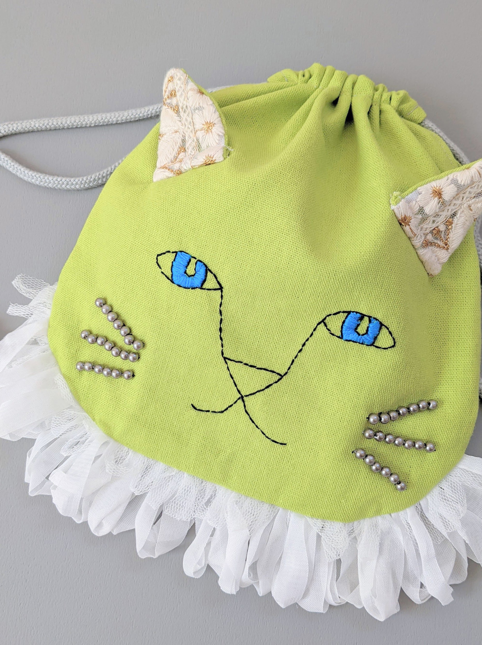 nakobukuro~ねこぶくろ~人気作の1つ。顔部分は手刺繍ですので、一つひとつ表情が異なります。お気に入りの子を見つけるのも楽しみのひとつ。
