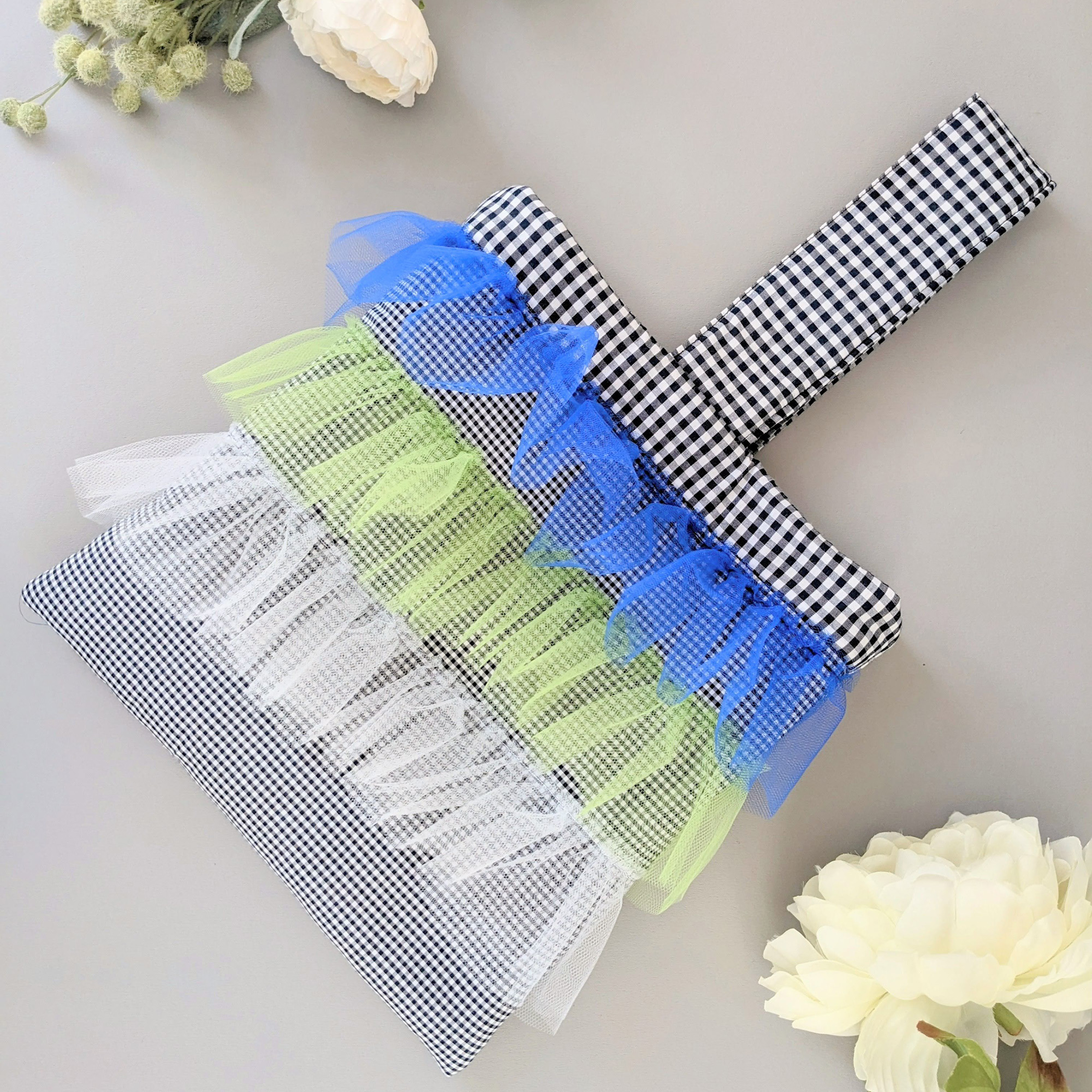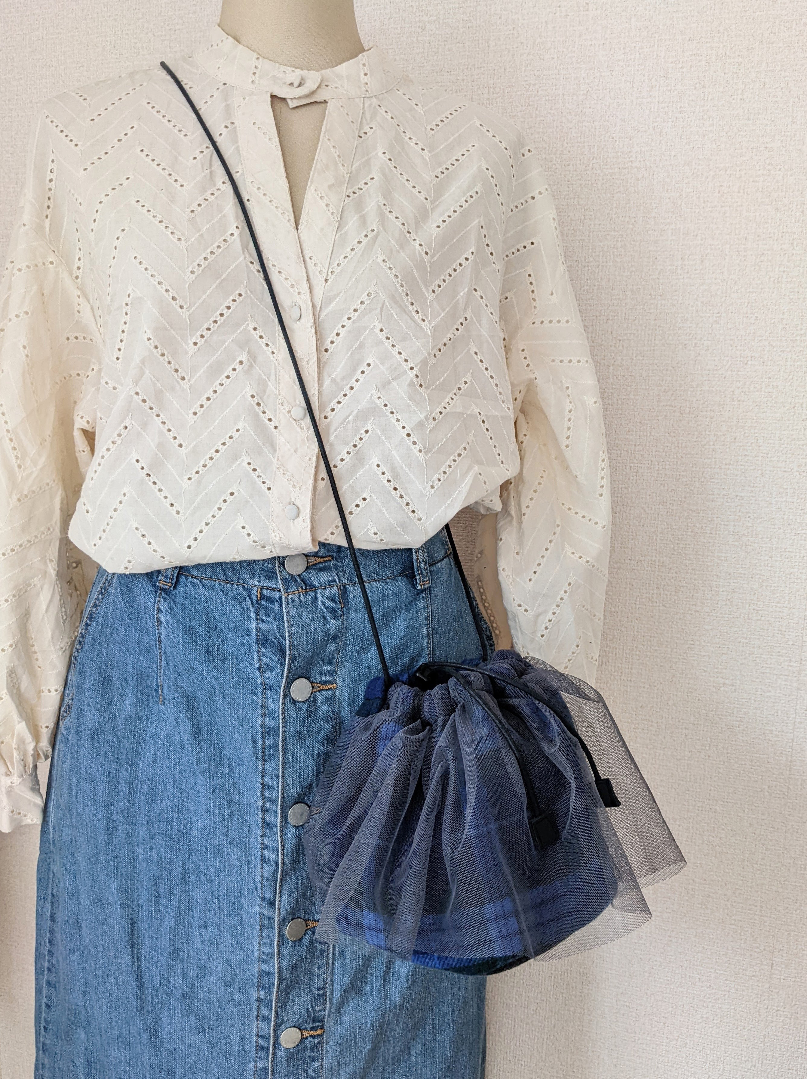 HOUKIバッグチュールやオーガンジー生地をフリルにして3段縫いしたデザインバッグ。ポップな箒のような形なのでHOUKIバッグと命名しました。
